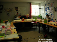 Zij heeft de winkel CreaDivérs in Hoensbroek (zuid Limburg) Els en ik waren zo aan het kletsen dat wij opeens in Duitsland reden. Hahaha, nee, hoor wij reden niet verkeerd. Om 9.20uur waren wij aangekomen bij het buurthuis waar ik deze workshop zou geven. De tafels klaar zetten. Alle Cricut machines aansluiten en natuurlijk hard aan de gang. Om 13.00uur kregen wij een heerlijke lunch. Er lagen verschillende broodjes, vleeswaren etc. op tafel. Sommige hadden even een nicotine stoot nodig en dan weer aan de gang, want de map moest af. Alle knoppen zijn aan bod geweest. Af en toe hadden sommige Cricut machines wat technische probemen, maar die waren zo verholpen.